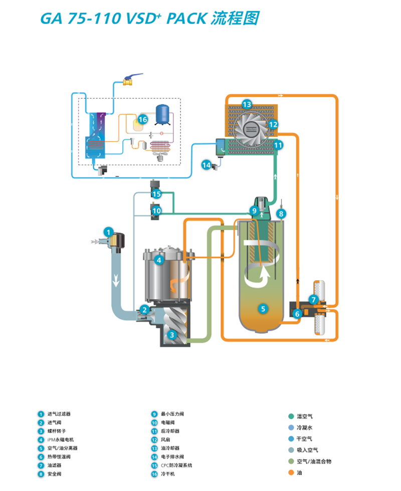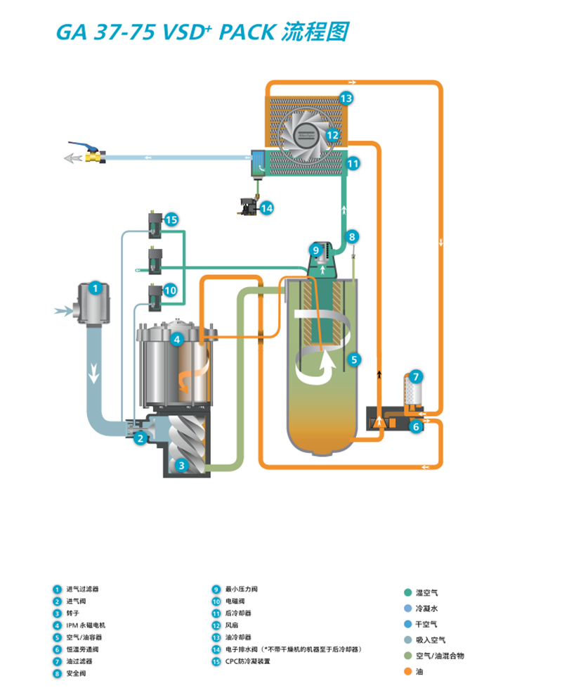 阿特拉斯·科普柯的GA7-110VSD + 系列空壓機標配變轉速驅動,內置永磁電機(IPM),結構緊湊、占地面積小,平均節能高達50%,可在惡劣的工況下穩定運行。GA7-110VSD + 超前的設計,在更長的運行時間內,實現成本縮減,并在壓縮機行業贏得廣泛關注和認可。
